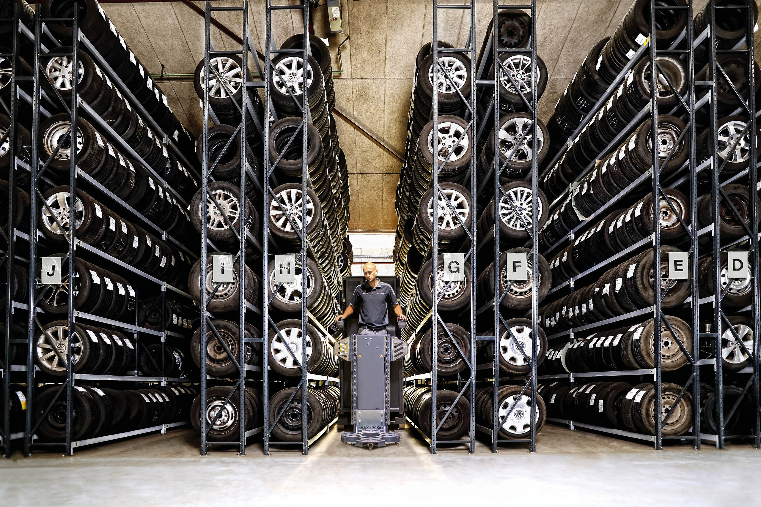 Mange lagre er velegnede til høje dækreoler - den eneste udfordring er finde en sikker, ergonomisk og klog måde til at få hjulene ind og ud af høje dækreoler.