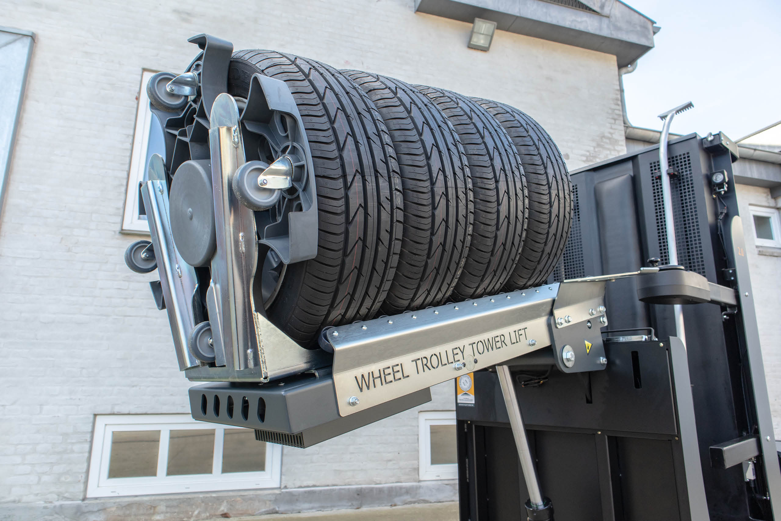 Wheel Trolley Tower Lifts 2.0 og 2.1 kan anvendes til håndtering af hjul i dækreoler med mere en 3 bjælkelag. Faktisk kan man have hele 8 bjælkelag i højden.