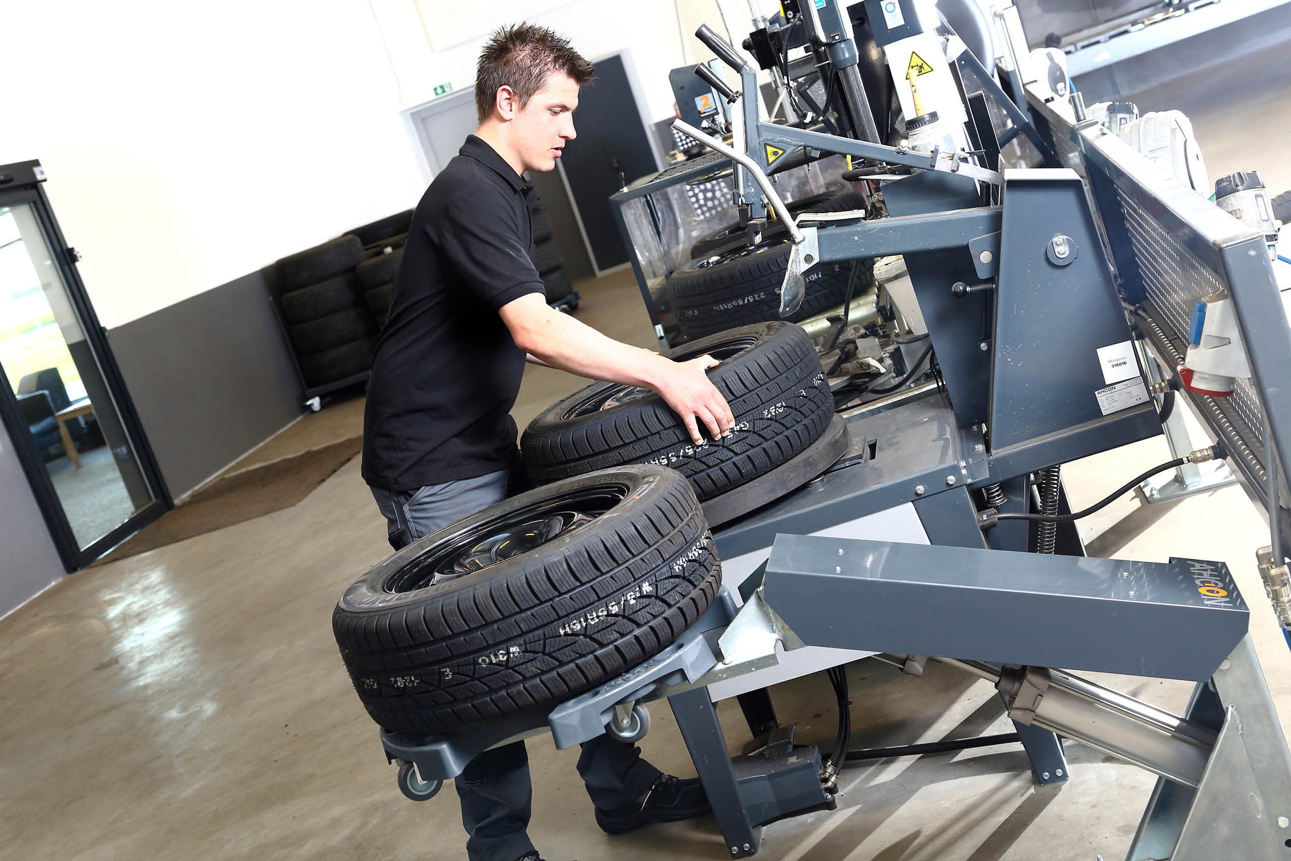 Fra dækfritrykkeren kan hjulene ekspederes videre over i dækskiftemaskine, pumpestation og afbalanceringsmaskine. Alt sammen i ergonomisk arbejdshøjde.