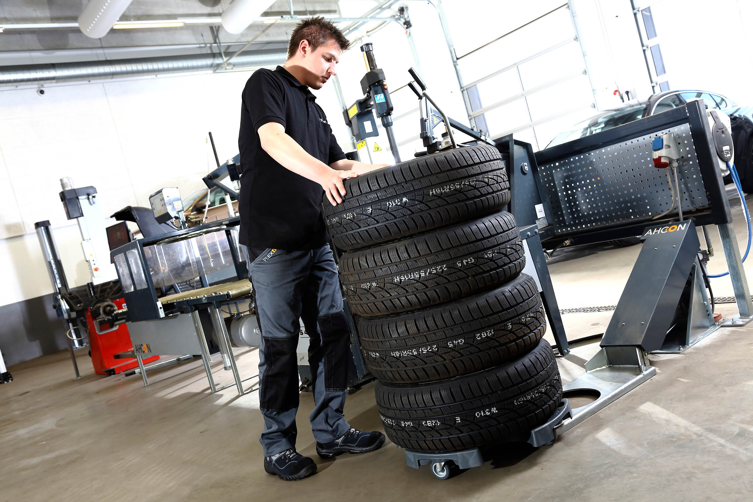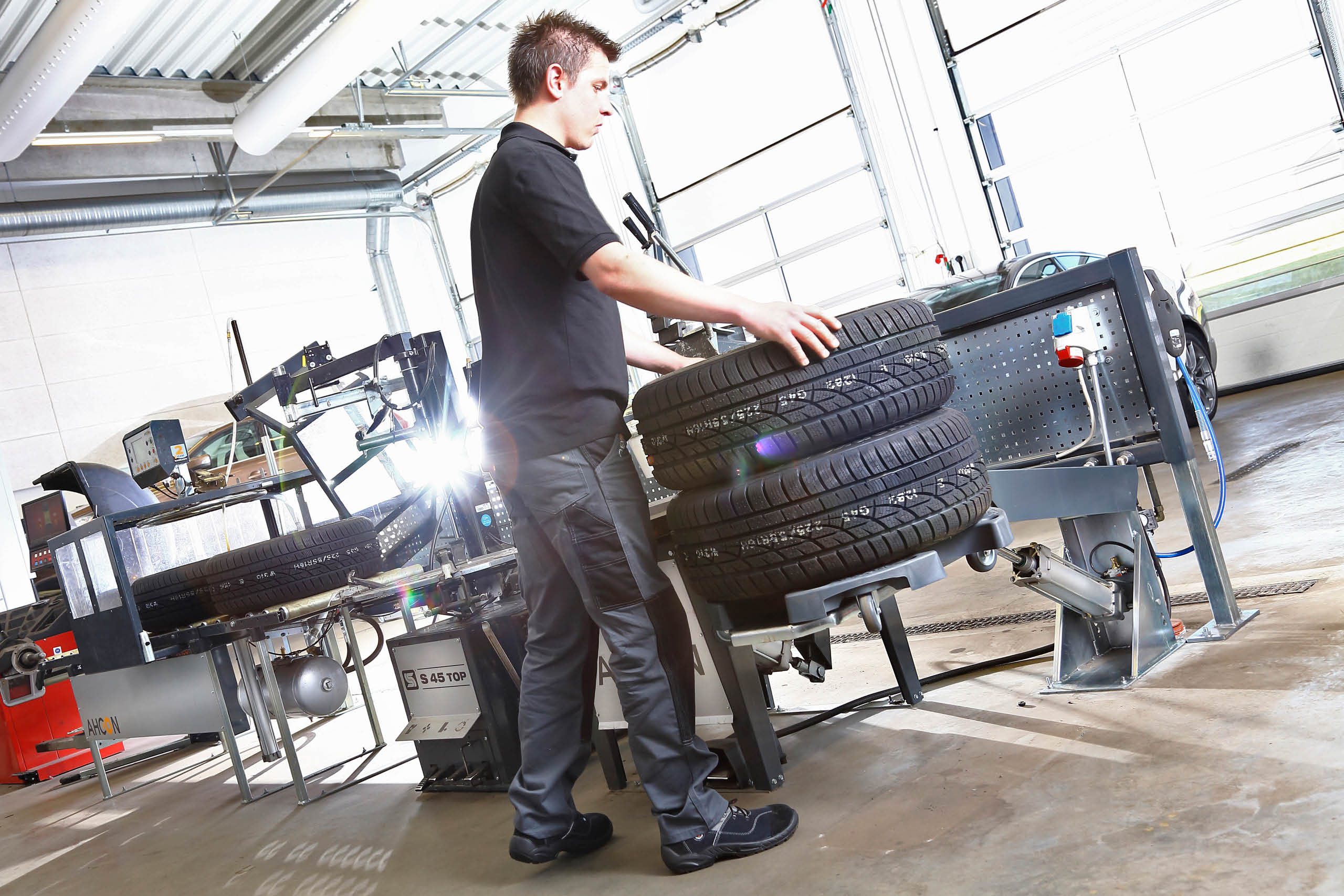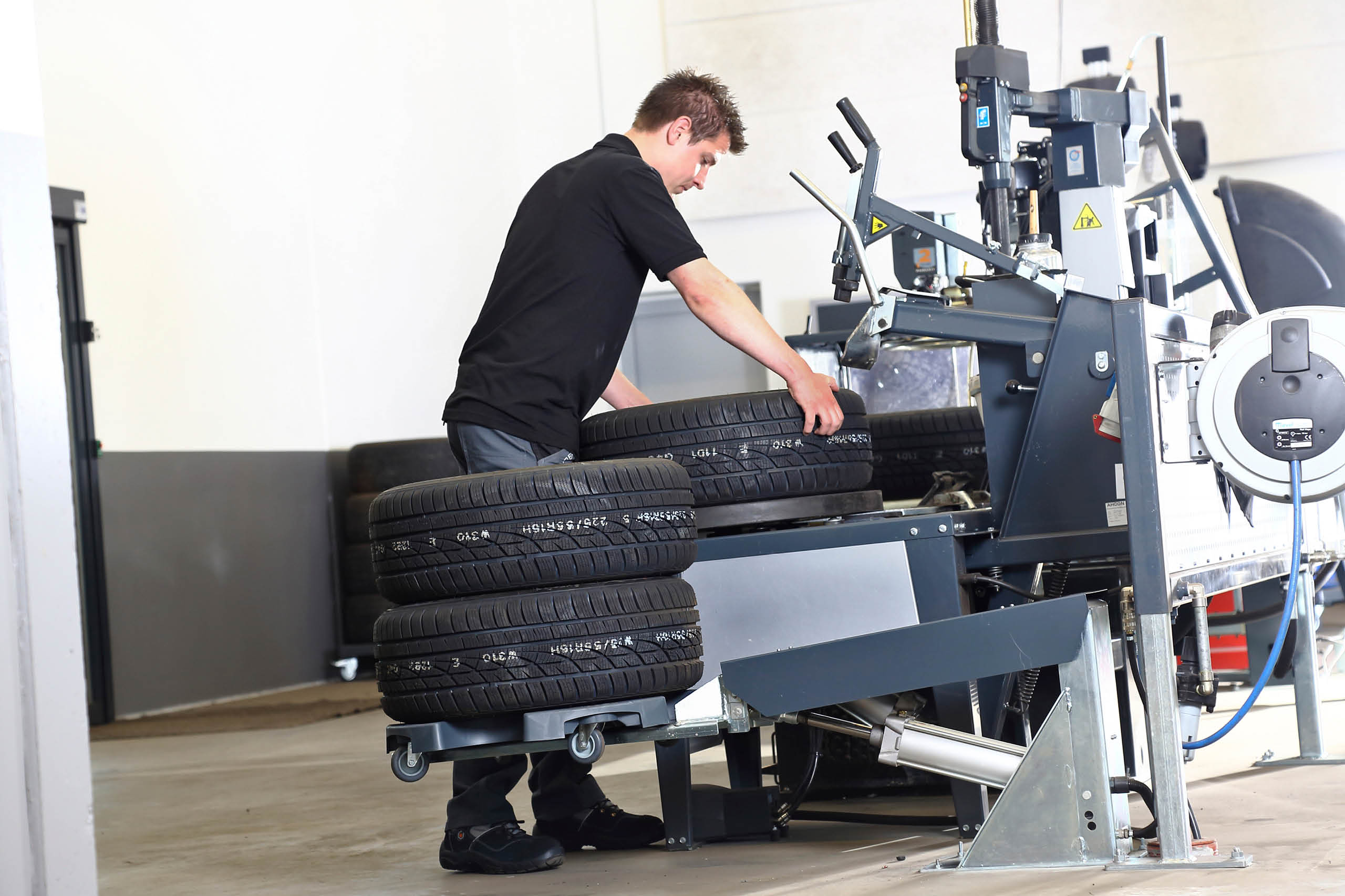 De afmonterede hjul kan på Wheel Trolley'en nemt og ubesværet trilles hen til en dækservicemaskine.