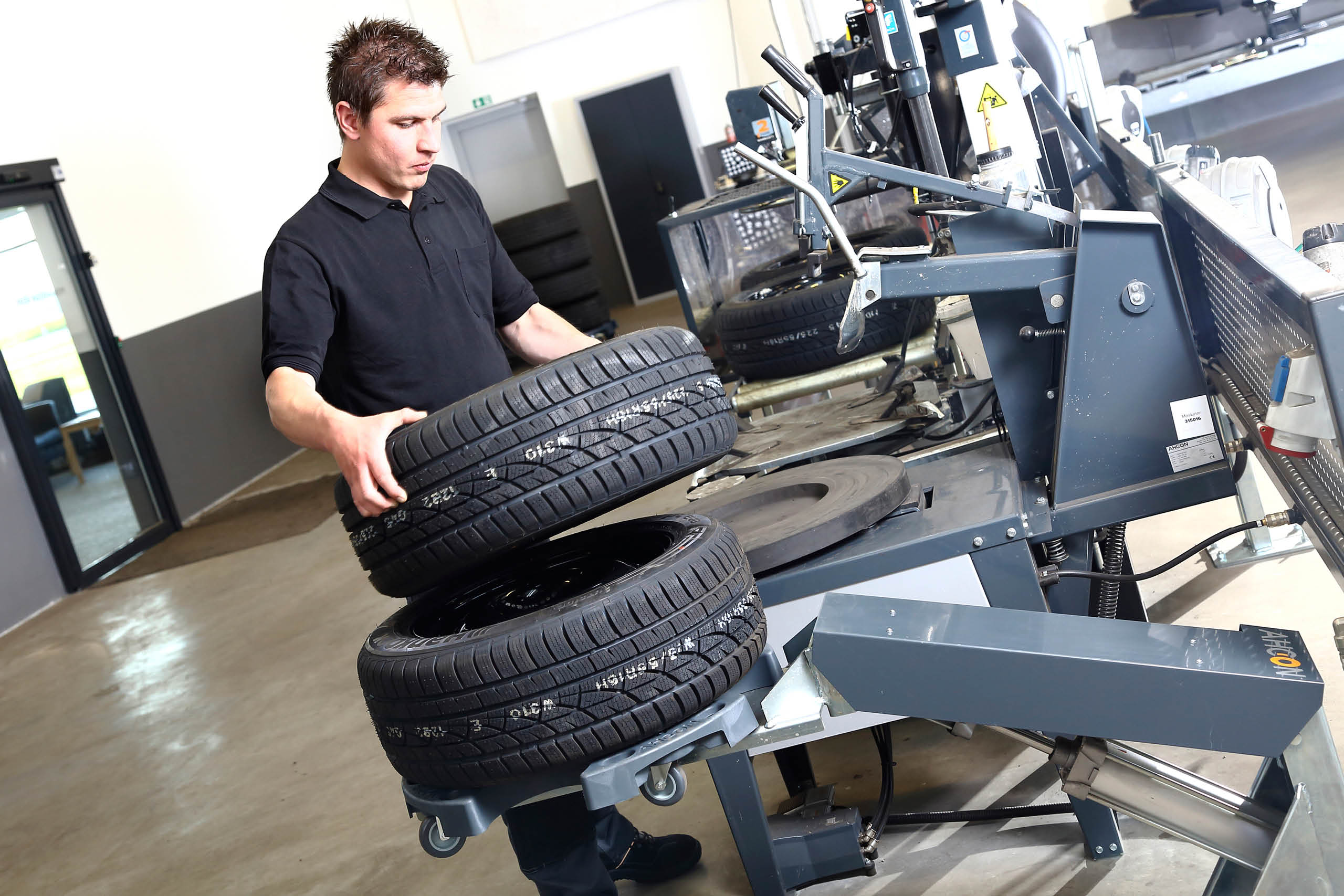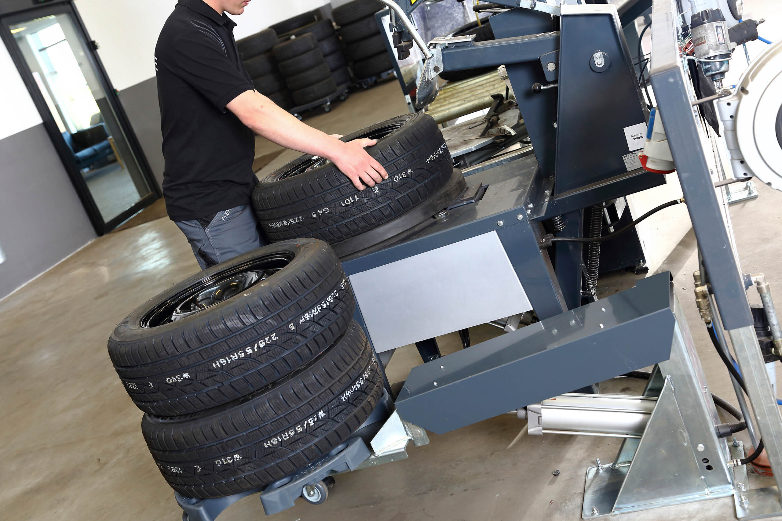 Fra dækfritrykkeren kan hjulene ekspederes videre over i dækskiftemaskine, pumpestation og afbalanceringsmaskine. Alt sammen i ergonomisk arbejdshøjde.